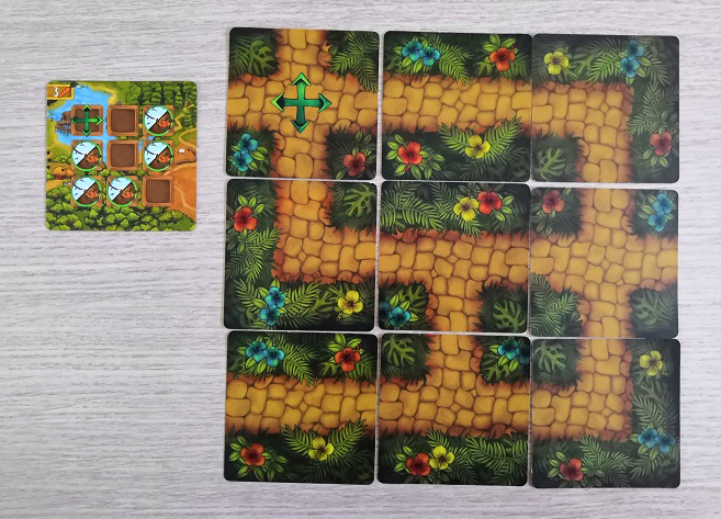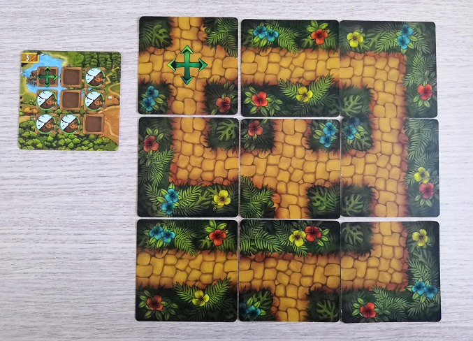 Карточка с легендарным приключением одна. И на ней четко указано как должны петлять дорожки лабиринта. У нас 2 минуты, чтобы собрать такой лабиринт. 10 птиц будут охранять 10 посадок с морковкой. Волшебная морковь произрастает в определенном месте. Карта с волшебной морковью замешивается с тремя картами с обычной морковкой и располагается в отмеченной звездочками квадрате.