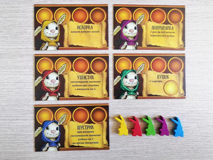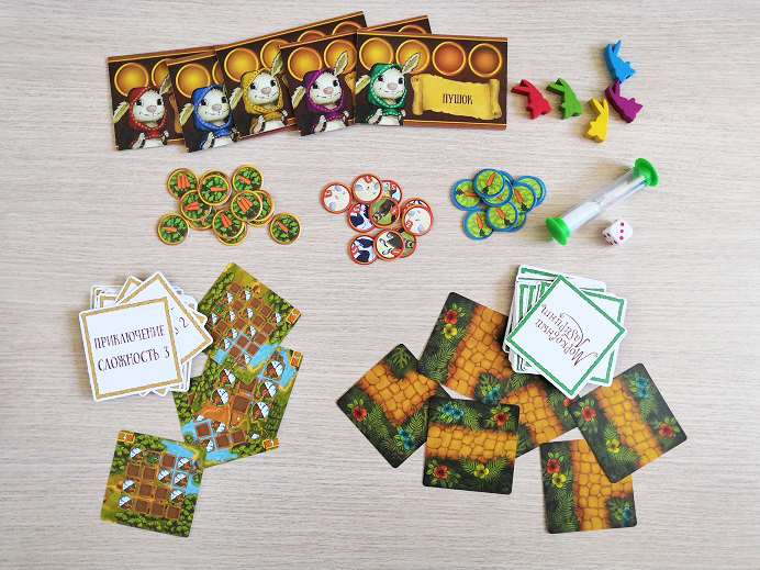 Каждый игрок выбирает себе планшет и соответствующую по цвету фигурку зайчика.