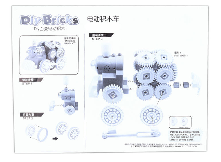 Итак, первой покупкой "шестеренок" был конструктор Фанни (см. Шестеренки моторизированные часть 1), который нравится всем, кроме качества пластмассы. Он был куплен в то время, когда сын еще не мог сам справиться с задачей размещения шестеренок на пластинах. Вместе с сыном строили дорожки с вращающимися шестеренками, машинки и даже самолеты :) А я периодически смотрела в магазинах - не появился ли "конструктор с продолжением" - например, с дополнительными деталями, типа цепи или реечной передачи. Но, увы... И вот, случайно увидела другой конструктор с шестеренками, более простой с точки зрения размещения шестеренок - на пластину с осью можно поместить только шестеренку подходящего размера, соединение самих пластин тоже достаточно простое - то, что надо для маленького исследователя :) Более того, я еще увидела.... что, оказывается, есть набор, который превращается в ... паровоз... Но паровозов пока не было в продаже и я все же решилась купить простой набор для пробы. И вот, вертящееся чудо техники у нас в ручонках :)