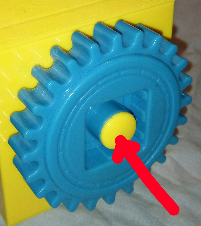 Если вдруг не понравится цвет шестеренки на домике, то ее можно сменить, сняв желтую заглушку (см. фото ниже) и открутив болтик: