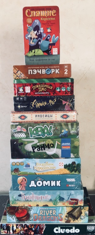 Лестница привидений, например, ведь сколько уже играем и играем, но в список никто не внёс. Или Сумасшедший лабиринт- одна из любимейших наших игр. Так же Запретная пустыня, Головоноги, Затерянные города, в которые с дочкой я уже и не знаю, сколько партий отыграли. Или Черепашьи бега- мы их на отдых брали, и дома заиграли по полной. Дети взрослеют и игра раскрывается с каждым годом по-новому. Или ещё Большая охота от Звезды, да, на неё много отрицательных отзывов, но мы уже сколько лет её нежно любим и дети играют в неё, и нам с мужем интересно. Даже недавно вот вспоминали, как мы её купили и как просиживали за ней вечерами после ужина. Это уже прямо традиция была. И до сих пор ведь играем. Ещё, конечно, 7 драконов, Мачи коро тоже достойны того, чтобы быть упомянуты.