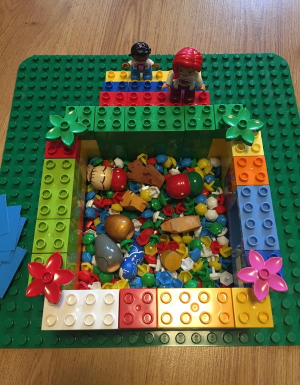 Вдохновившись обзором игры «Синий слоник», за пять минут из подручного лего дупло, мозаики, картона и разных мелких игрушек соорудили вот такую настолочку. Вдруг кому пригодится идея 😉