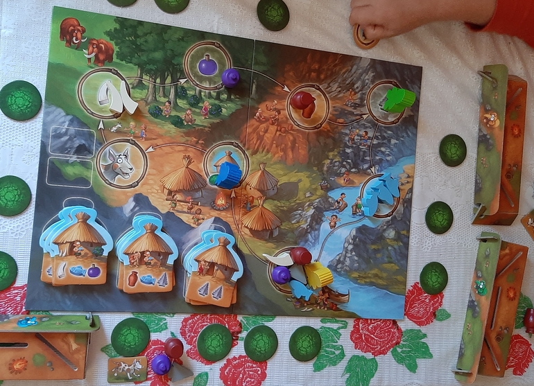 Каменный век юниор, моя любовь! Очень рада, что и дети прониклись этой игрой! С удовольствием играют все, племянница первым делом из коробки с играми достала ее) а сын особо неравнодушен к собаке, не понимая особо ее плюсов, просто чтоб была)
