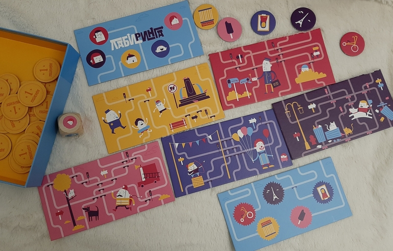 В Лабирингу играли без него) тут девочки быстро сделали меня, поиграли двумя способами, по правилам, искали куда идут, и вытаскивали жетоны, прослеживали кто же идет) я не плакала)