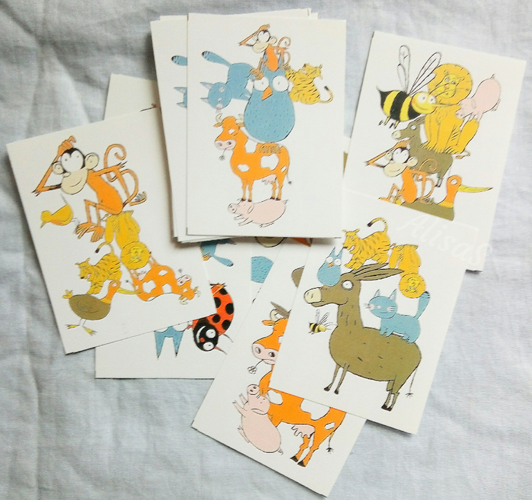 Неудачно купила пленку для ламинации и вот такой жуткий результат (пузыри). Но ничего, зато особенность наших котиков - как сказал Лёва, увидев расстроенную маму: "У нас пятнистые карточки, как пятнистые котики".