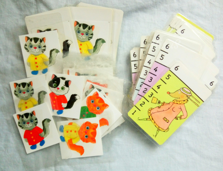 Вначале мы рассматривали с Лёвой карточки и узнавали что же там изображено. Потом разбирались что же такое рифмы и с чем их едят. И по-немногу начинаем играть. Интересная игра на внимательность и не только :)