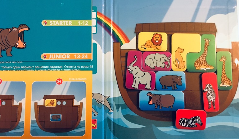 Вообще, Ноев ковчег это вторая наша головоломка. Появилась она у нас давно, дочке было лет 7, наверное. А сыну 4 года, но пытаться решать задания начал уже после 5 лет, ближе к 6 годам. На мой взгляд, одна из лучших головоломок в магнитной серии. У нас есть все, кроме Волшебного леса, и лишь ковчег пользуется успехом из года в год. Мы год назад отдали наш старый ковчег ( но выглядел он совершенно , как новый) моим племянницам, так он им понравился во время приезда к нам. Я думала, что покупать больше не буду, головоломок много, в зверюшек наигрались. Но дети не давали мне покоя, просили ковчег и даже мысли не допускали, что мы можем без него прожить. Пришлось приобрести Ковчег2.
