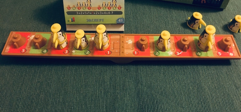 Или вот, тоже новичок. Здесь уже можно поговорить о математике , на левой стороне сумма чисел равна 6 и на правой стороне число 6 можно создать вот таким образом, посадив три тукана друг на друга на выступ с цифрой 2. И это даёт равновесие.