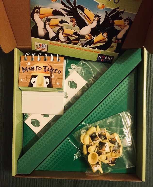 Игра эта лишь сегодня попала к нам в руки . До этого, года два болталась у меня в отложенных в магазине, а я даже ни разу не зашла на страничку с игрой, чтобы вникнуть в суть. Какое-то несуразное название, коробка непохожа на стиль бондибон, всё это не располагало к ознакомлению. И вот на днях , не иначе, как чудом, я вдруг заметила эту коробку, вскользь глянула обзор в ютюбе, не нашла ни одного отзыва у нас в сообществе, а когда увидела, что количество экземпляров тает на глазах, решила- будь что будет. И не прогадала. Мало того, девочки, я в восторге и не могу нарадоваться, что эти манго танго у меня .