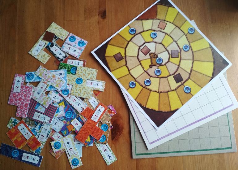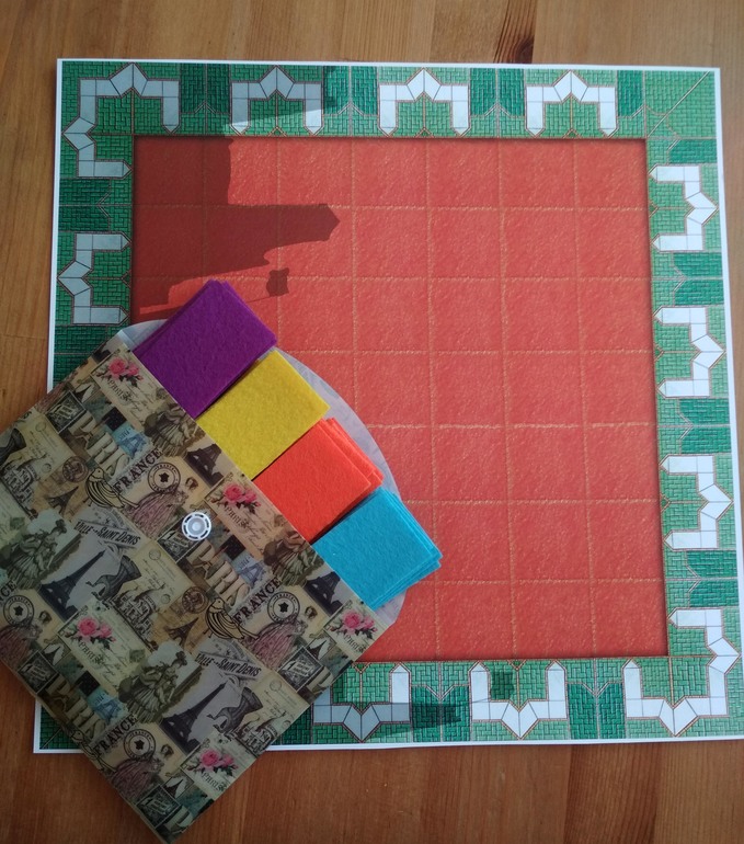 Потом попробовала сделать Марракеш, в качестве ковриков использовала жесткий тонкий фетр. Он хорошо справляется со своей функцией)) Только поле пришлось чертить заново на переплетенном картоне, потому что распечатанное сильно глянцевое, по нему коврики скользят.