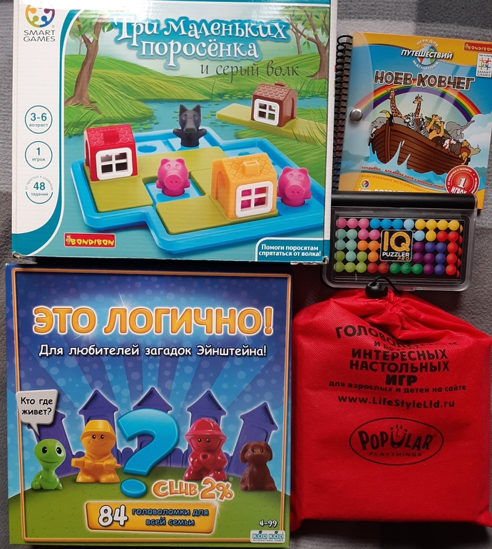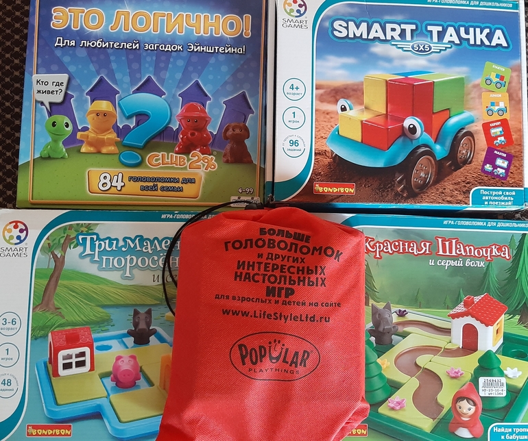 Лена, отличные у вас головоломки! "Это логично" очень заинтересовала, надо изучить, вдруг и мне надо))). Красная шапочка какая красивая! Может мне тоже надо?)))) У нас есть пара недорогих головоломок и всё. Надо подумать о пополнение).