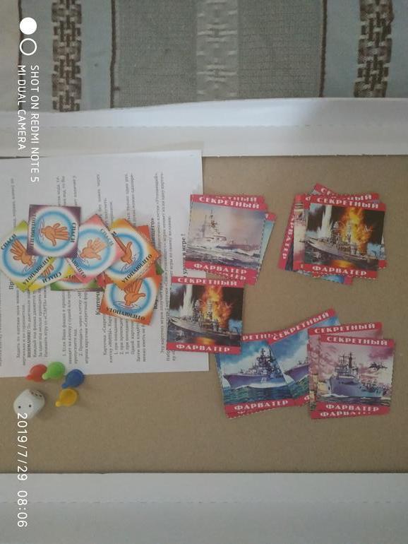Больше одной карточки с кораблем у нас ни разу за игру не было, всегда актуально пройти по полю с миной (их много).