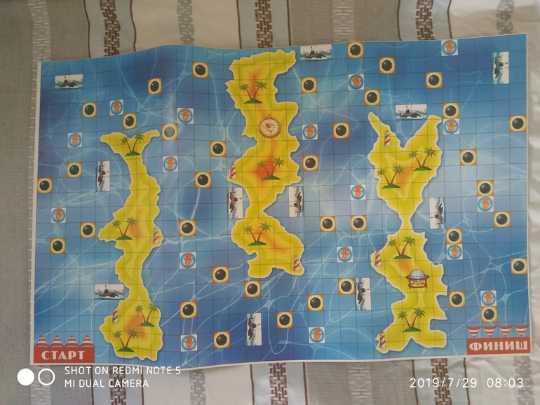 Играла я с младшими, они постоянно ругались, возмущались, что надо отдавать карточку с кораблем, Богдан возмущался, что нельзя бомбить корабли соперников. И в результате, до финиша никто так и не дошел, т.к. Богдан попытался "срезать" путь вдоль берега, Мишка этим в грубой форме возмутился, я просто взяла и свернула игру.