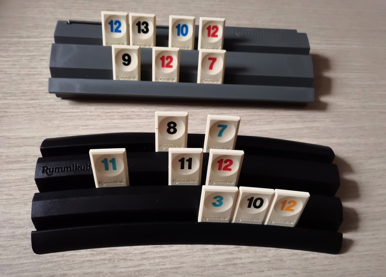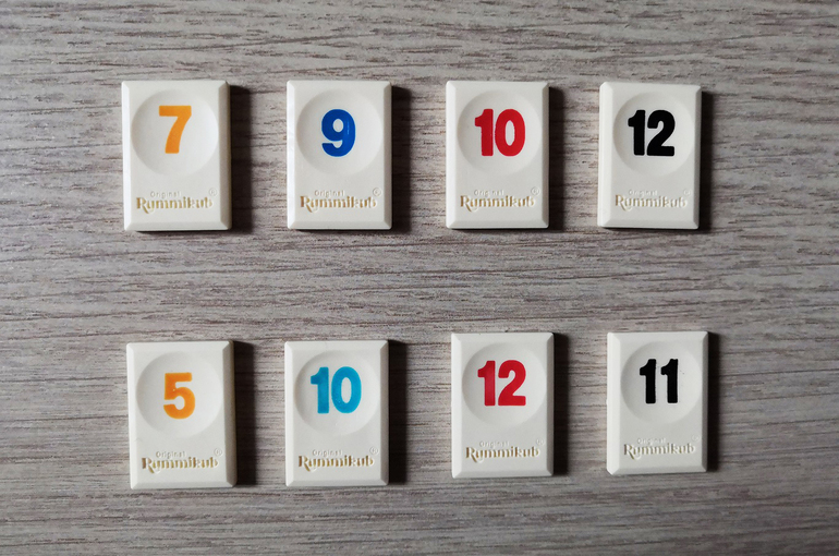 Основную версию Руммикуба в руках не держала, но судя по видео, фишки в ней в два (а то больше) раза больше.