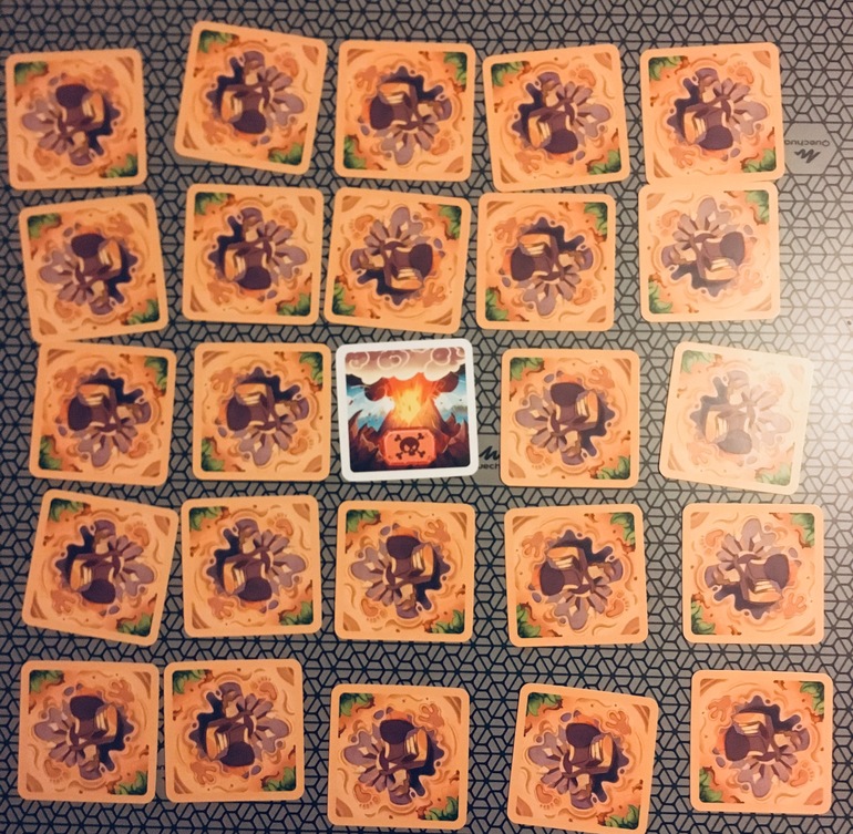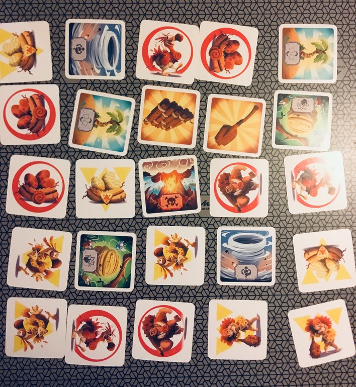 На острове живут люди, птицы и есть гнезда с яйцами. В свой ход каждый открывает по 2 карточки. Чтобы спасти птицу, нужно открыть в свой ход человека и птицу одного цвета, карточка птицы откладывается, а карточка человека переворачивается обратно. Чтобы спасти яйца, нужно одновременно открыть кладку и птицу также одного цвета, тогда яйца откладываются в сторону, а птица возвращается на место. Людей можно спасти определенным способом, об этом подробно написано в правилах. Есть также особые карты. Сейчас мы пытаемся пройти первый уровень сложности, который предполагает такие карты опасностей: торнадо- если открыта эта карта, все игроки должны повернуться вокруг своей оси на 360 градусов. Улей- всё игроки должны положить руку на эту карту. Мираж ( пальмы) - эту карту нужно поменять местами с другой , открытой в этот же ход.
