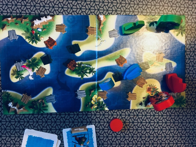 Нам дали коробочку на время. Игра от степ пазл рекомендована от 6 лет. Принципом игры мне один в один напомнило Секретных агентов того же издательства. Только здесь все задания для поиска сокровищ игроки получают от оппонента, сидящего справа. Передвигать свою фигурку пирата по островам можно только в том случае, если оба острова связаны кораблем. По ощущениям - игра неплохая для совсем неискушенных участников. Сыграли одну партию, выиграла я. Больше играть не захотели дети.