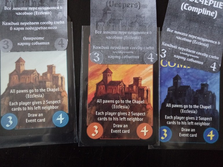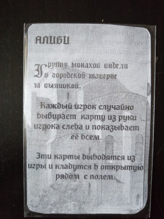 Она обалденно красива (если убрать мои черно-белые вставки), как и все игры от Days of Wonders, проста по правилам, но... я так и не поняла какие надо задавать вопросы другим игрокам, чтобы получить преимущество))) На мой взгляд, в такой ситуации, надо успокоиться ("когда времени не хватает, хуже всего - потерять спокойствие. Мы должны вести себя так, будто в запасе вечность") и наслаждаться процессом! Бегать по комнатам, воровать в чужих кельях ( -"Украсть?" -"Позаимствовать, во славу имени Господня".), побольше блефовать, смущая игроков неверными предположениями ("А вы, - настаивал я с юношеским упрямством, - разве не совершаете ошибок?" - "Сплошь и рядом, - отвечал он. - Однако стараюсь, чтоб их было сразу несколько, иначе становишься рабом одной единственной")... Тем более, не забывайте, братья сестры мои, это же евро. А что это значит? Это значит, что здесь можно выиграть по очкам, даже если убийцу угадал не ты, а сосед)))