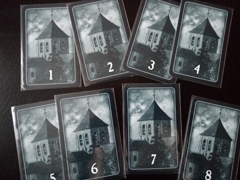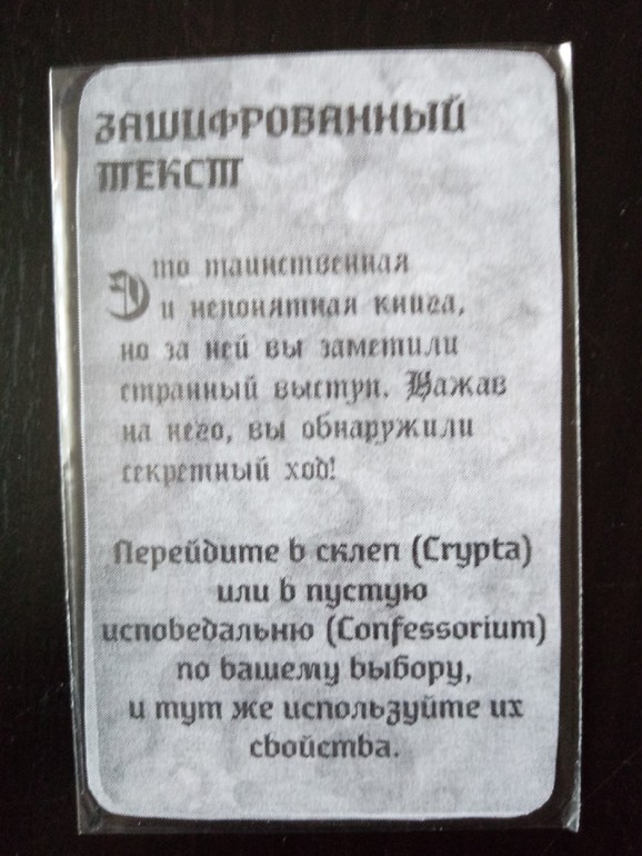 Здесь настало время для второго покаяния) В этом обзоре вы увидите слишком много чёрно-белых картинок, и всё потому, что кто-то (догадайтесь кто) пожалел денег и напечатал вкладыши в протекторы дома на стареньком черно-белом принтере. Текста на английском на картах много и он сложный, поэтому без таких приблуд здесь не обойтись.