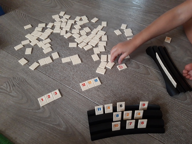 Долго я искала мини версию Руммикуба по приемлемой цене, уже и не помню, где нашла. Появилась новая проблема, с кем опробовать. И тут пришел племянник 17 лет .) Три партии с равным соперником и я влюбилась в эту синюю коробочку. Первые две партии выиграла я, но племянник взял таки реванш и довольно улыбался ))) Каждый день играть не тянет, но иногда под спокойный разговор о том о сём идёт отлично.