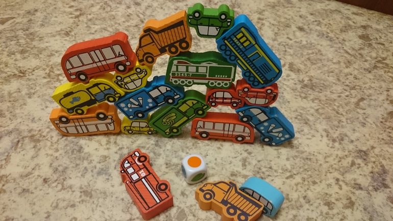 Машинки из конструктора, кубик и перед нами новая игра на ловкость.