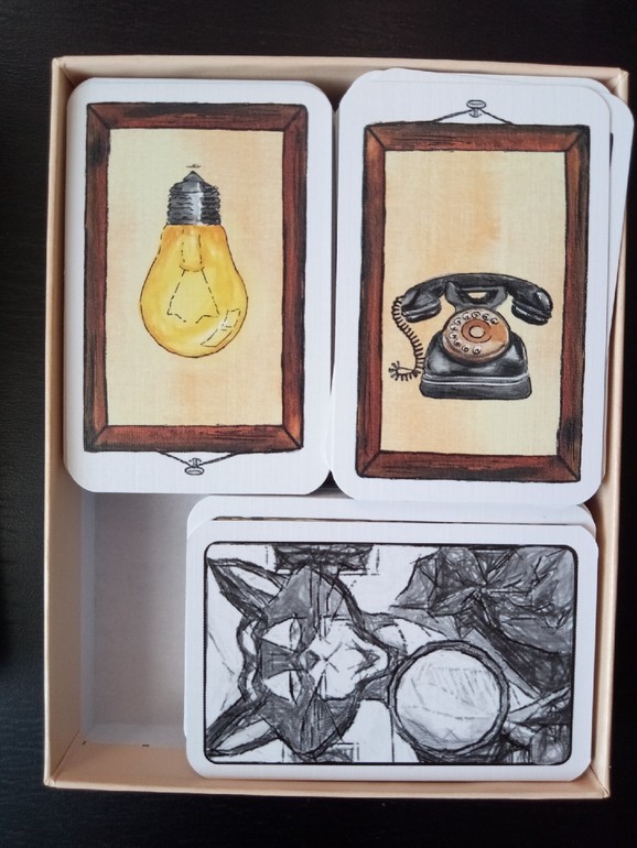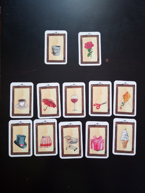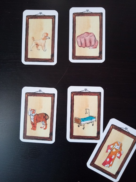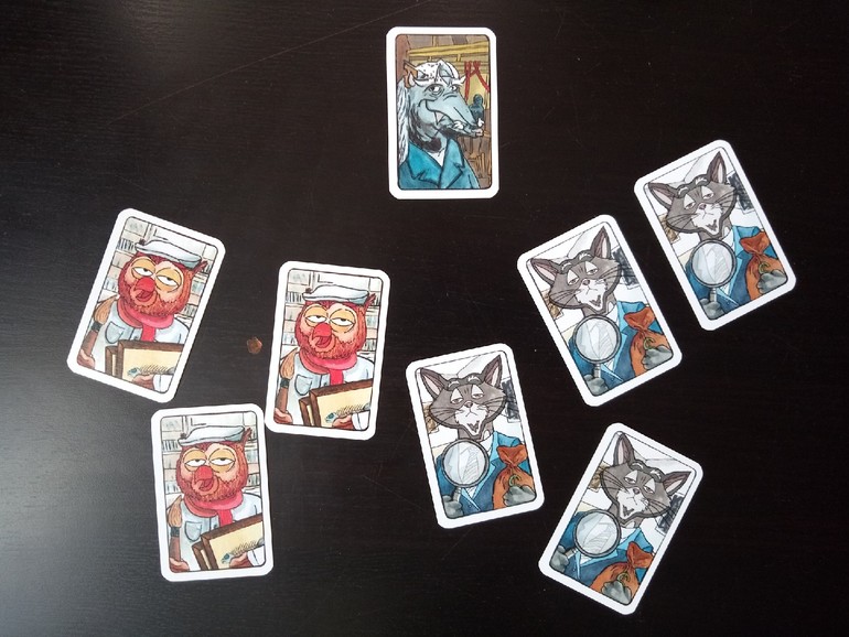 4+5 = 9 карт хорошо перемешиваются и наступает очередь котов, которые должны из этих карт выбрать те, которые положили художники, распределить их по нужным темам и не попасться на удочку Бельратти.
