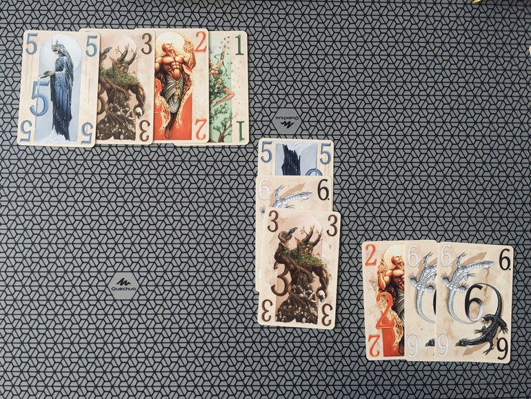 Эта игра покоряет, в первую очередь, своими прекрасными иллюстрациями. Мы с дочкой разглядываем каждый раз полученные композиции. А вообще игра про числовые ряды. Быстрая , интересная. Здесь есть и возможность немного навредить противнику и ограничения в доборе карт.