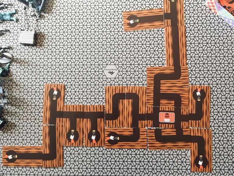 Сыграли три партии и вот третья заставила нас понервничать, никак у нас не получалось забаррикадировать все выходы. Думали, что проиграем . Но нет).