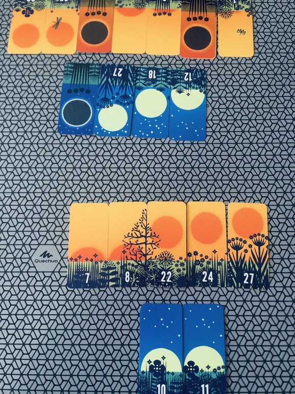Довольно интересная механика, а так как мы с дочкой просто обожаем подобные игры, то Солнце и Луна в числе моих любимых, но вот дочка почему-то относится к ней прохладно. Играть не отказывается, но особого вдохновения от процесса у неё я не замечаю. Сыграли две партии, оба раза выиграла я. Жаль, что игра не продаётся уже, и как же я рада, что у меня она есть.
