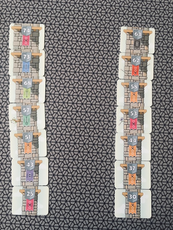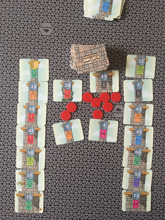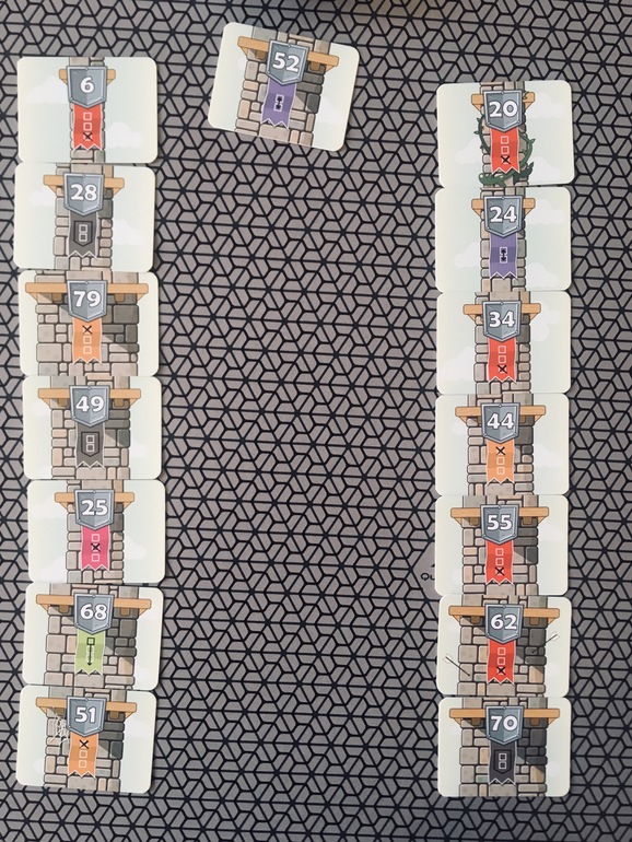 В начале игры каждый участник получает 7 карт и выкладывает их в виде неправильной башни, в которой в самом низу наименьшее значение карт , а к верху это значение возрастает.