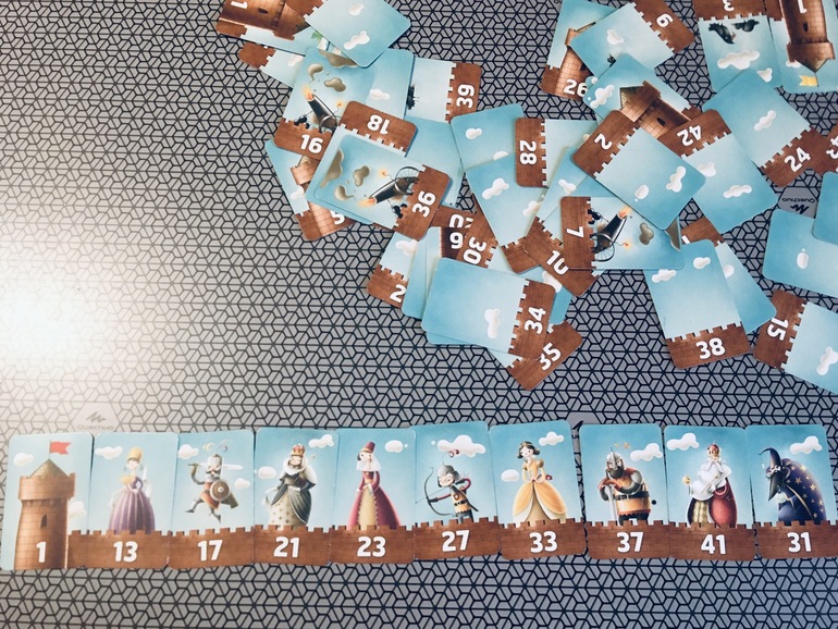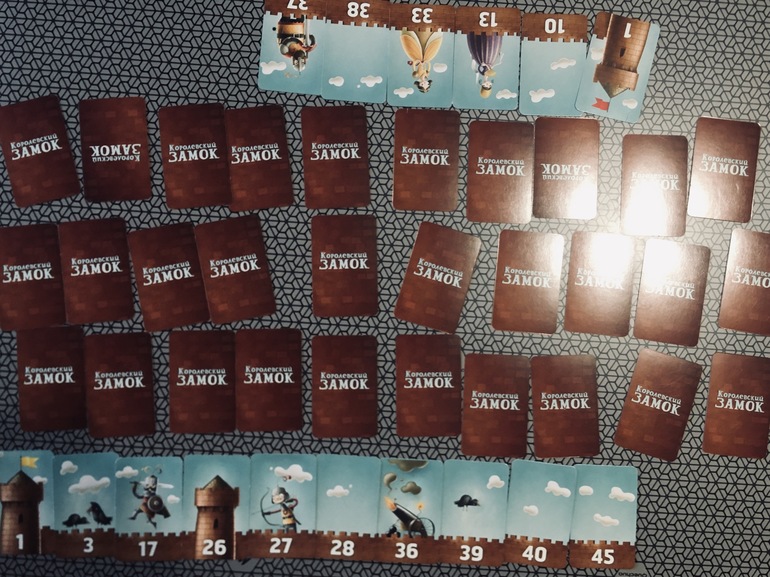 Тоже игра от российских авторов. Она у нас уже года три или даже больше. Игра на выстраивание числовых рядов с элементами Мемори. Не могу объяснить её успех у детей, но он поистине колоссальный. Вы даже не представляете, сколько было сыграно партий. И сейчас дети сами вспоминают, просят поиграть. В пятницу о замке вспомнила дочка, она и среди недели спрашивала про эту коробочку, но что-то отвлекло, и мы забыли. Долго искали , нашли и сыграли три партии. Все три раза выиграла я. Правила очень простые. Каждому игроку выдаётся карточка с башней, это начала замка. Задача выстроить замок/ряд из 10 карт в порядке возрастания. На некоторых картах есть персонажи, которые в конце игры принесут очки. В интернете я как-то нашла детальный обзор игры и там автор отзыва предложил разнообразить правила, одарив персонажей на картах дополнительными свойствами. Мы эти правила с благодарностью переняли и игра стала значительно интереснее, по крайней мере, для меня.