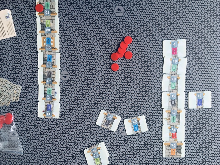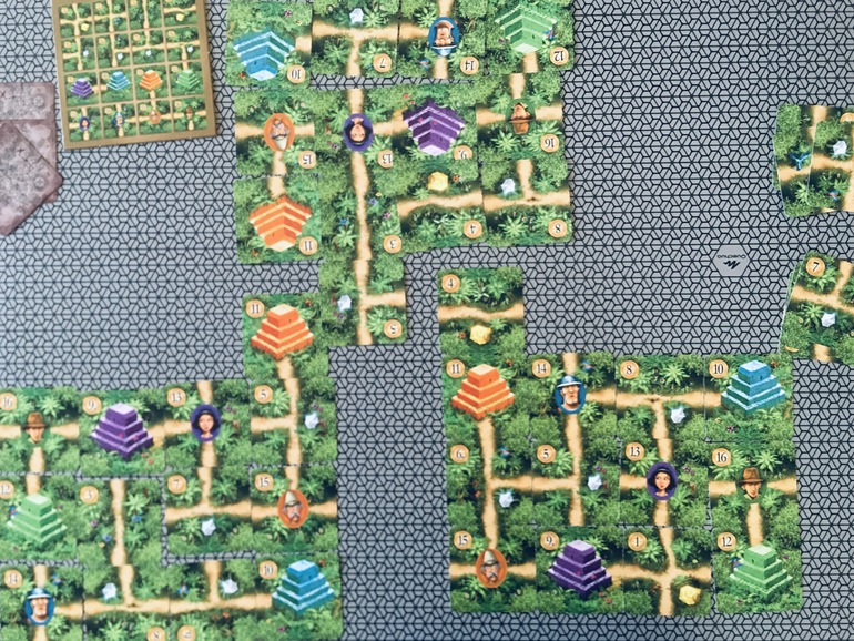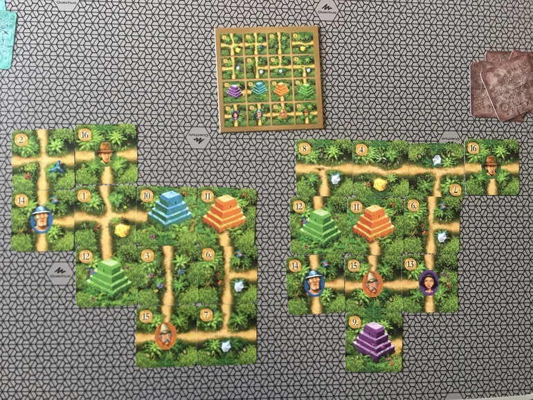 Очень давно не играли в неё. Даже больше скажу, не особо нас игра заинтересовала в своё время. Теперь же впечатления совершенно другие. Мне понравилось выстраивать дорожки в ограниченных условиях, не показалось, что это легко. Первую партию играли, вспоминая правила, фактически наощупь. А вот во второй партии я старалась уже запоминать, какие карты вышли у дочки, стоит ли сейчас рисковать , выкладывая искателя и пирамиду и получится ли потом добавить вот сюда развилку, чтобы путешественник пришёл в пирамиду с добычей. Дочка тоже просчитывала свои ходы. Когда подсчитывали очки, мы увидели, что семерка лежит неправильно и перевернули её.