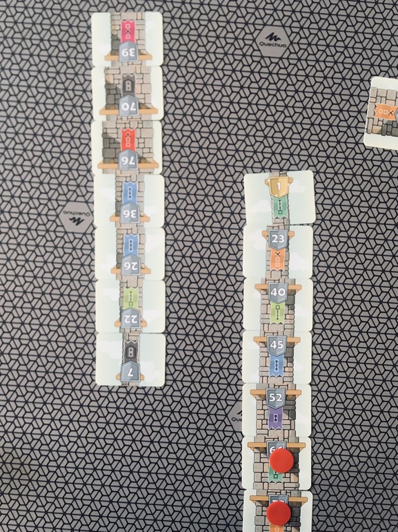 Вот на этой фотографии, сын вытащил карту с числом 15 и должен был заменить этим блоком любой этаж в башне. И вот вместо того, чтобы поставить 15 вместо 4, он решает убрать этаж с числом 35, а вместо него поставить число 15. Вот где логика? Но эта игра всё-таки не сильно сложная. Думаю, немного тренировки и сын будет играть намного лучше. А может попробуем через пару месяцев и дело наладится само собой.
