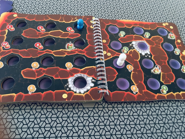 Вроде игра простая и сыну по возрасту, но вот свойство жетона переворачиваться он не использовал ни разу, во второй партии пару раз я подсказывала ему, куда лучше выложить гномов. Так что в полную силу поиграть не получилось. Надо попросить дочку составить компанию, может раскроется игра.