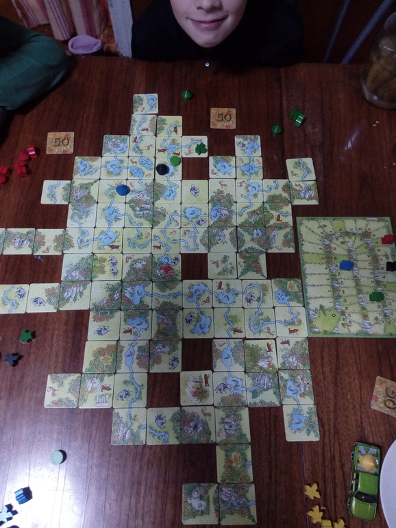 Пока ждёшь своего хода, бежишь снимать молого со стула, окна, печки... А первый наш Кркассон-это детский, самая большая любовь дочки. Она потому и терпела, что после партии в Охотников, я с ней играла в детскую версию.