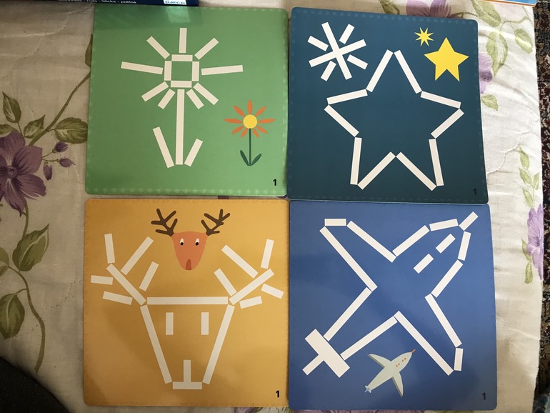 Сын сам подошёл ко мне, когда я фотографировала игру. И начал подбирать палочки, выкладывать на картинку. Интерес проявил, маме радость😊 надеюсь игра поиграется и принесёт пользу. В доме ещё и старший игрок 4,8 годков ))