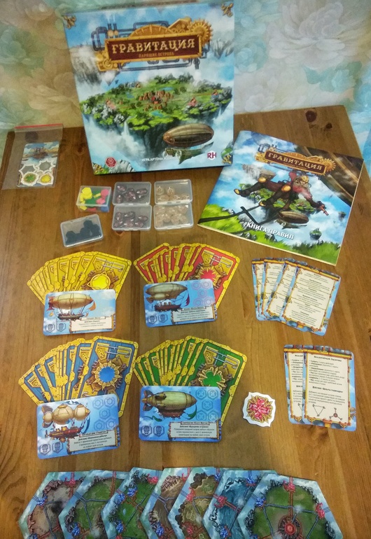 Все фишечки деревянные и жетончика гравитации уже разложила в коробочки (в комплекте они не идут).