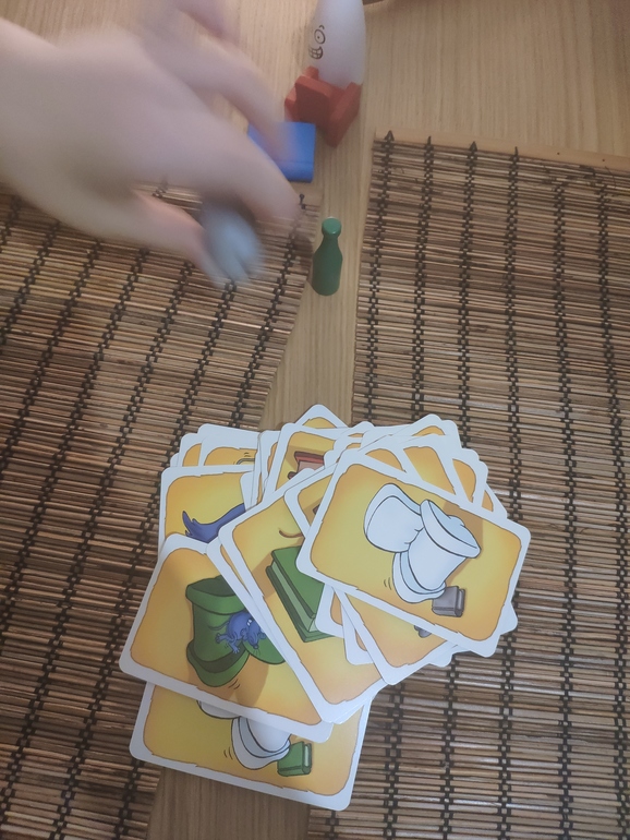 После "Коварного лиса" уже я предложила детям "Барабашку". Играли с удовольствием, но по принципу не "кто победит", а "схватил правильно предмет - молодец", без подсчёта количества выигранных карточек, потому как соперники не равные, отчего игры на скорость обычно у нас заканчиваются слезами... Я же выступала в роли "крупье" - выкладывала очередную карту и хвалила правильно схватившего предмет.