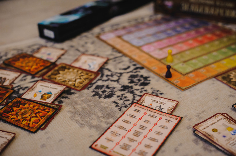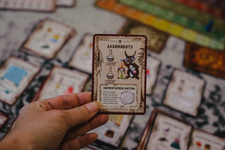 На волне удовольствия от игры мы решили не заигрывать коробочку друзей, а купили себе подарочный набор. Меня сначала пугали отзывы, что с дополнениями эта игра становиться длинной и утомительной, переживала, не будет ли Андрею тяжело. Но он очень хотел дополнение, и мы никак не могли выбрать, какое взять, потому взяли оба. Как бонус - ужасно милая карта Аххимикотэ.