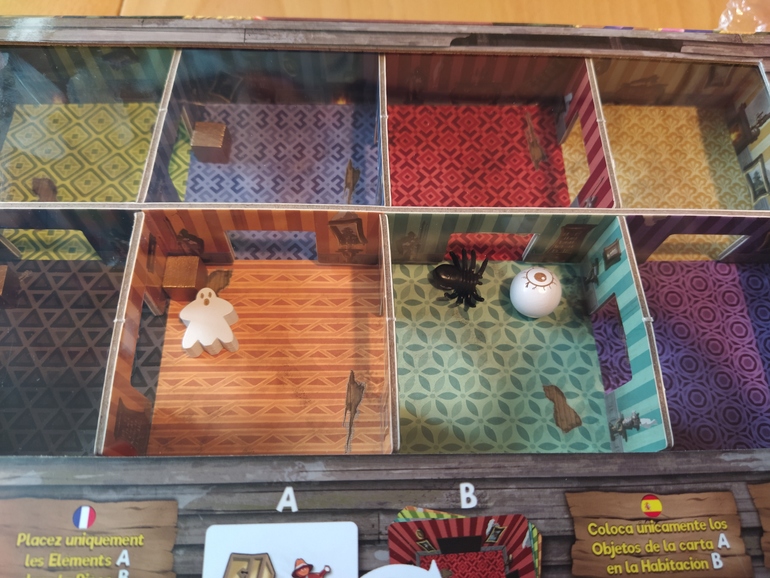 Каждый игрок в свое поместье помещает: 1 искателя приключений, 2 привидения, 2 глаза, 2 паука, 2 змеи и 3 сундука.