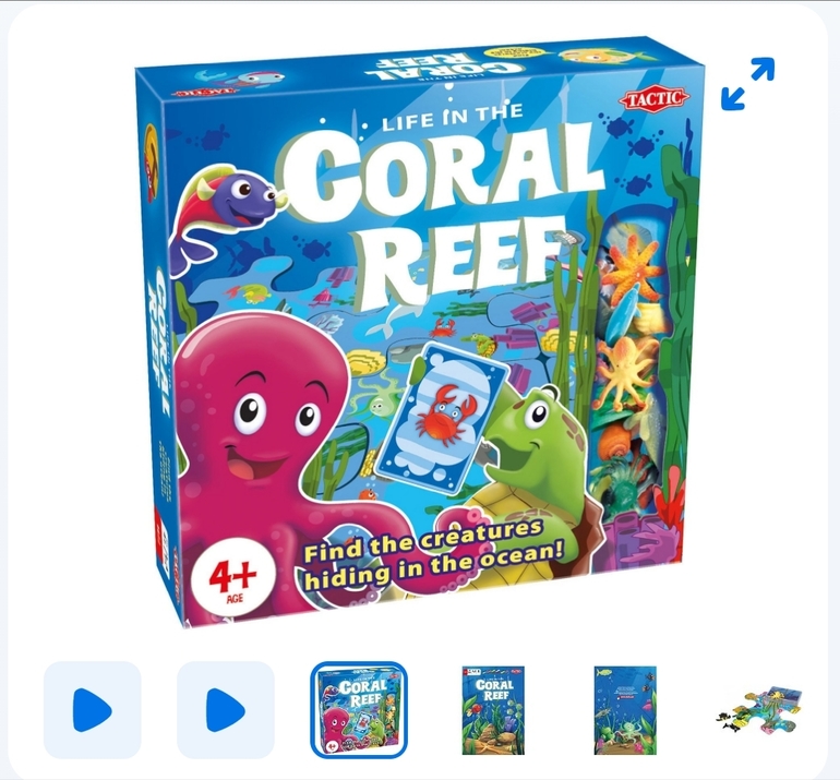 У нас есть коралловый риф. Это просто большая искалка. Собирается поле (Из-за того что поле состоит из отдельных пазлоподобных элементов) оно каждый раз разное. И потом открываете карточки с изображением и ищете его на поле. На перегонки.