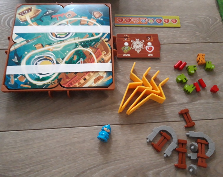 Как и все игры в моём отзыве, это игра на ловкость. Нужно пройти уровень (прямо как в компьютерных играх), добраться до таблички с номером следующего уровня, выполняя по ходу задания. Сыну больше всего нравится сбрасывать охранников в отверстия. Наш рыцарь и сам частенько проваливается туда, но мы старательно отрабатываем технику. Научились уже понимать друг друга по жестам и с полуслова.