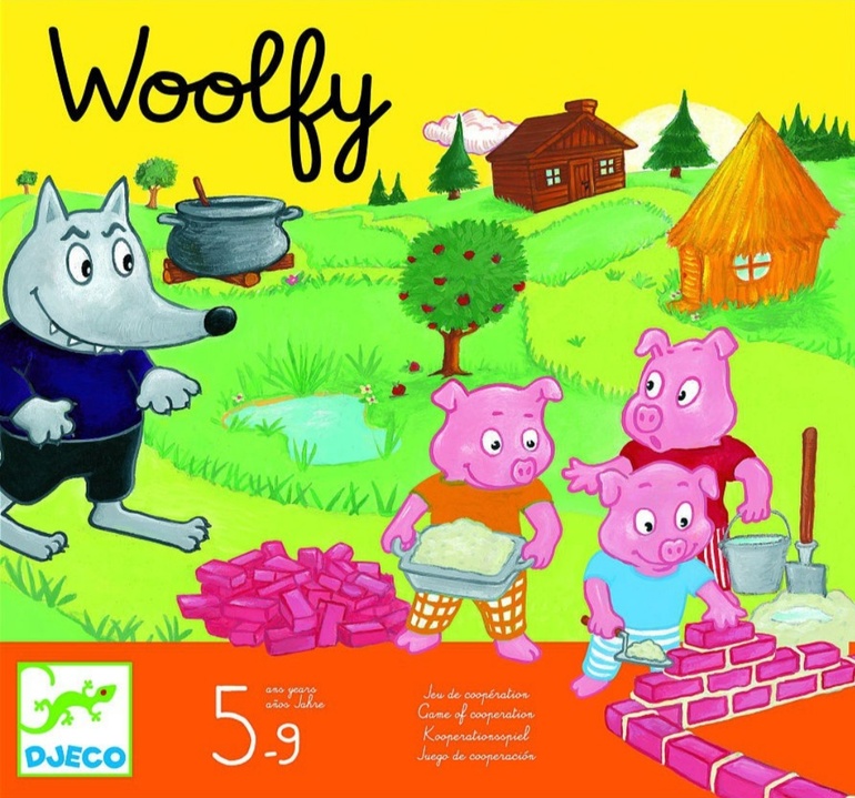 С 4 лет играем. Это кооперативная игра, компоненты очень хорошего качества 👍🏻Она не сложная в освоении. Цель построить кирпичный 🏠 дом и спрятаться в нем, чтобы не съел волк 🐺