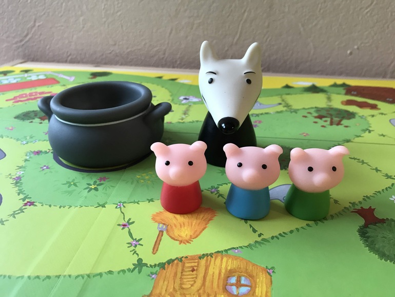 Играем командой против волка. Мне очень понравилось, что игроки не привязаны к фигуркам поросят. От этого ход и развитие не предсказуемо и кумекать соображать заставляет в разы. Ещё не играли) только собираемся. Но вот например в коварного лиса быстро уловил правила, хотя мы только только начинаем играть в замысловатые настолки.