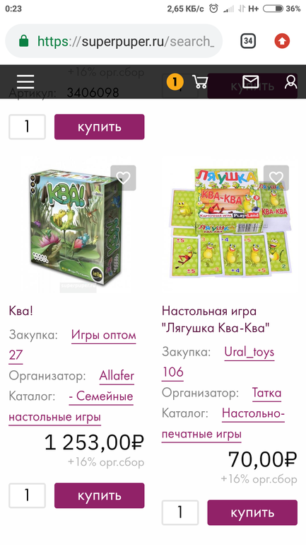 Доброй ночи, всем любителям настольных игр. Знаю, многие ищут, поэтому выложу отдельным постом. Случайно увидела на сайте закупок superpuper возможность заказать игру Ква!!! И не только, на Замки Бургундии тоже принимаются заявки. В поисковой строке введите эти игры, он вам выдаст закупки с этими играми. Организатор пишет, что закупка подвижная. Может чего то не оказаться. Но, эти игры пока числятся в наличии. Пробуйте! Посмотрите ещё что есть в наличии, ваши хотелки. Для себя решила Ква не покупать. Но если для вас будет эта информация полезна, я буду очень рада. Ведь мечты обязаны сбываться!