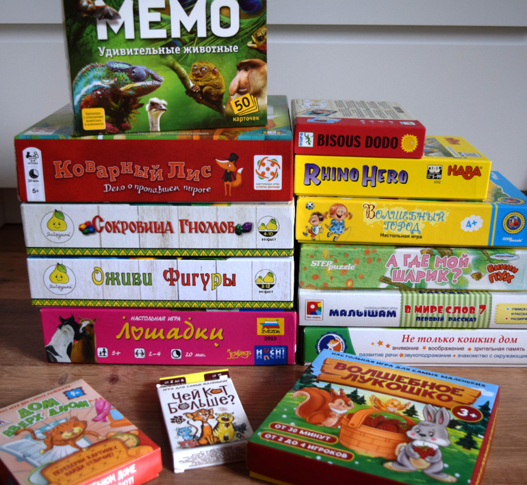 Пару раз доставали "Додо", "Волшебный город", "Волшебное лукошко", "Чей кот больше?". Пробовали бОльшей компанией, чем два игрока, сыграть в "Сокровища гномов" - скучновато всё равно.