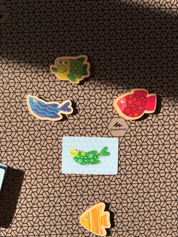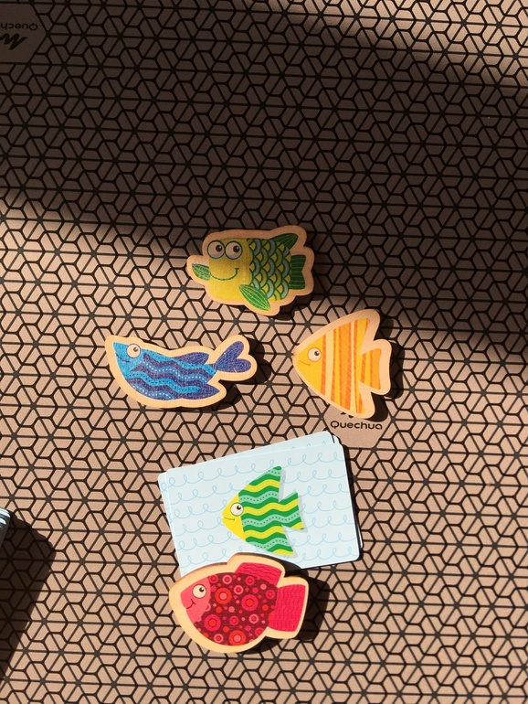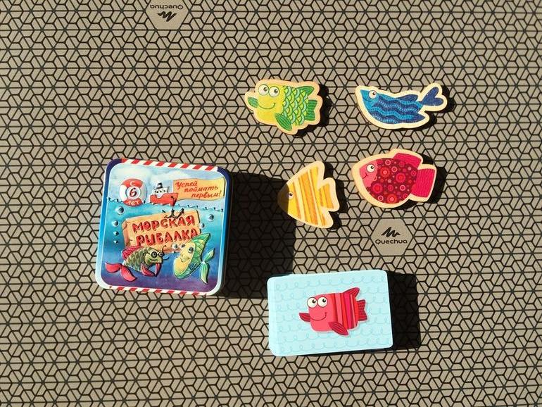 Коробочка прелестна, рыбки -деревянные, к карточкам никаких претензий. Купила в вб за 144 руб и очень -очень довольна. Сегодня поиграли с детьми, сын в восторге и просил снова и снова начинать сначала. Опыт игры в Барабашку здесь нам не особо помог, путались мы все, достаточно сложно оказалось на скорость соотнести узор, цвет и форму. На мой взгляд, отличный дорожный и отпускной вариант.