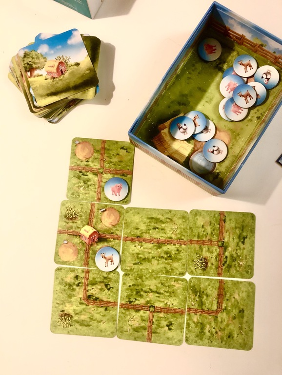 Ассоциаций с Каркассоном у меня не возникло. Отдаленно, конечно, что-то есть, хотя бы выкладывание карточек, но принцип получения очков, мне кажется, другой. Кстати, животные не в закрытых загонах, если их не съели к концу игры, тоже приносят очки.
