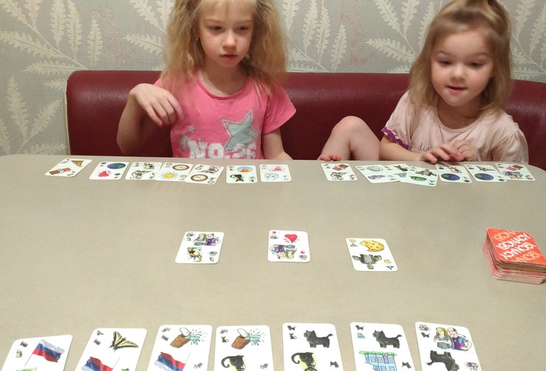 Я была в восторге, такой знаковый момент, что мы все вместе играем в настолку - я, муж и обе дочки. Только от соски еле отучилась, и вот уже играет практически на равных).
