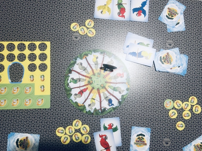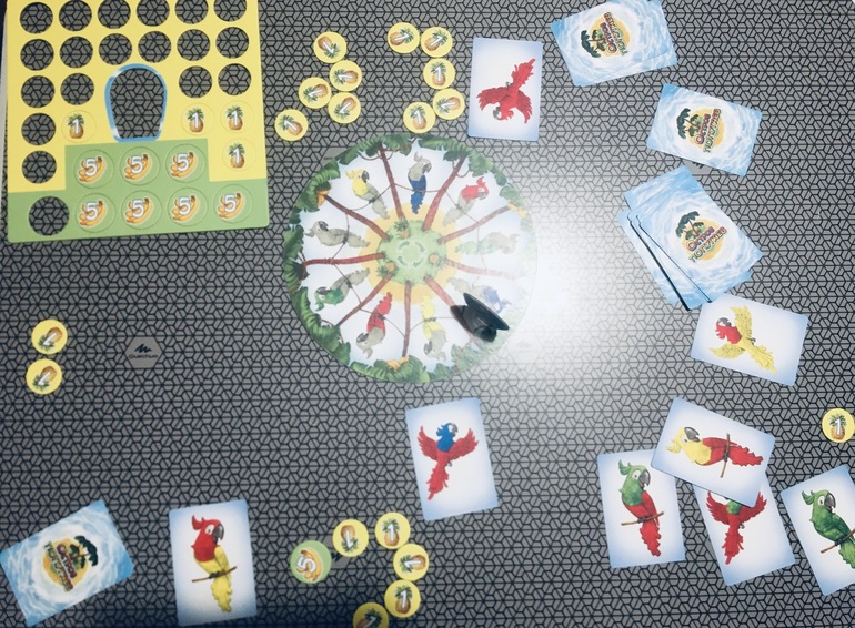 А эта игра рекомендована от 5 лет. Буквально вчера в сообществе Ксения написала подробный обзор по этой игре. Мне остаётся только добавить, что задумка довольно интересная. В 5 лет, мне кажется, ребёнок пока будет просто менять карты, а вот чуть погодя уже начнёт думать и где-то просчитывать свои ходы наперёд. Нам с детьми эта игра тоже очень понравилась. Лично мне было интересно. Поиграли две партии, один раз выиграл сын, он лихо сдавал сразу по две-три карты попугаев и набрал 12 победных фруктов. Во второй партии у нас с дочкой вышла ничья. Сын всю игру пытался насобирать сет из трёх попугаев, в итоге остался с одним ананасом.