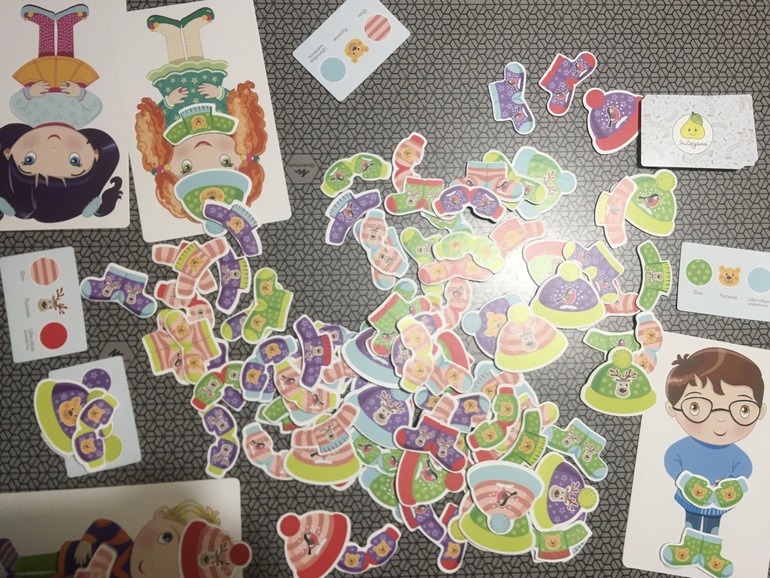 Первый раз мы играли немного не по правилам, закончили игру не тогда, когда кто-то выполнил 5 карточек, а когда все закончились. Выиграла дочка.